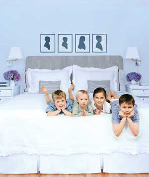 Sơn hoặc trang trí các đồ nội thất, tấm ga giường và tường bằng màu trắng. Nó sẽ góp phần tạo ra sự yên tĩnh trong phòng (có thể giữ lại một phần của bức tranh tường cảnh quan đô thị nhưng phải đóng khung). Bây giờ hai cái giường ngủ (với tấm ga giường màu trắng) phải đặt song song đối mặt với nhau để thiết lập một đối xứng.