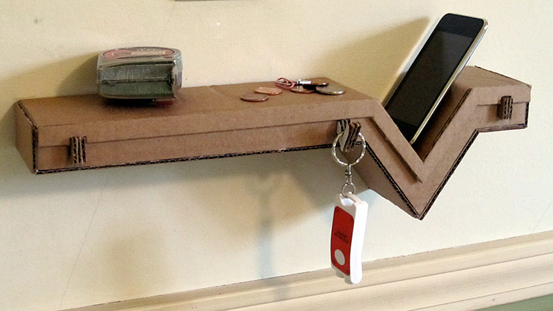12. Một chiếc kệ mở được tạo từ những tấm bìa các tông cũng rất lạ và độc. có thể giúp bạn treo chìa khóa, điện thoại hay bày đồ trang trí nhà.