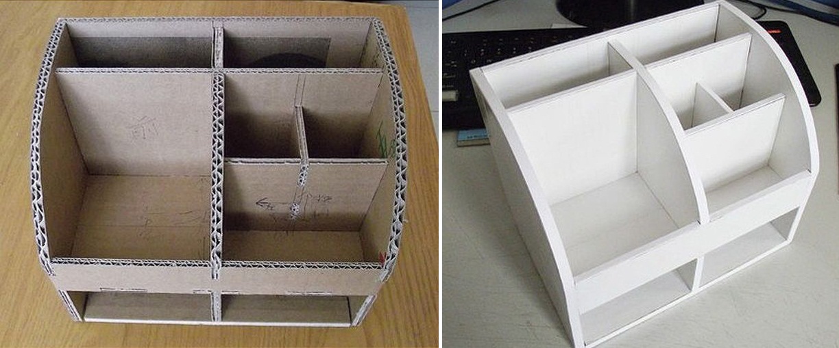 13. Sản phẩm hoàn thành trông chẳng khác gì một chiếc hộp gỗ để đồ văn phòng phẩm mua ở cửa hàng, nhưng thực tế nó chỉ dược làm từ những chiếc bìa các tông.