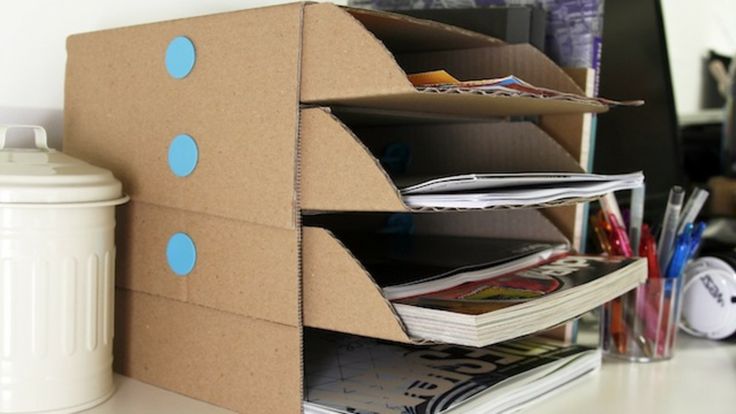 5. Những tấm bìa các tông cũng có thể được cắt để biến thành những chiếc khay để đựng giấy tờ trên bàn làm việc.