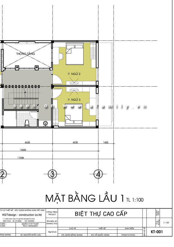 - Lầu 1 : Bao gồm 3 phòng ngủ- các phòng đều được thông thoàng tối đa nhờ giếng trời và các khoàng sân trống.